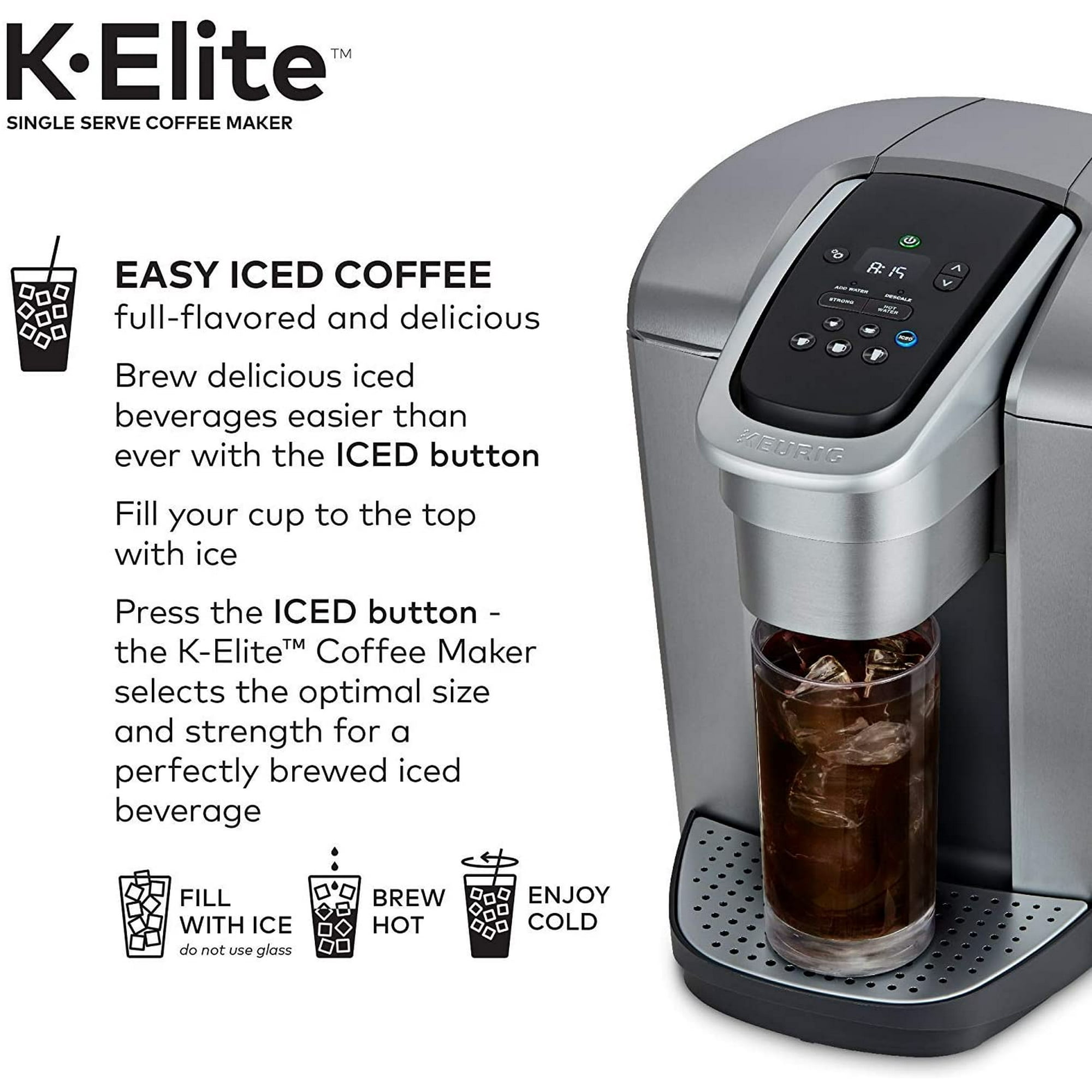 Keurig K-Express Essentials Single Serve K-Cup Pod Coffee Maker. Up to 7 cash back The Keurig KElite single serve coffee maker features Strong Brew for when you want to brew a bolder cup of coffee and an Iced button to brew hot over ice for a. Keurig K-Elite Single-Serve K-Cup Pod Coffee Maker with Iced Coffee Setting.